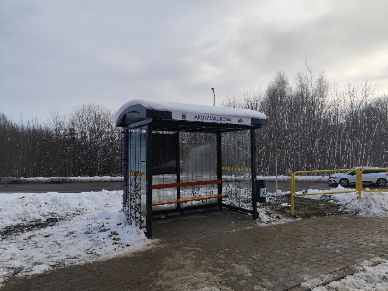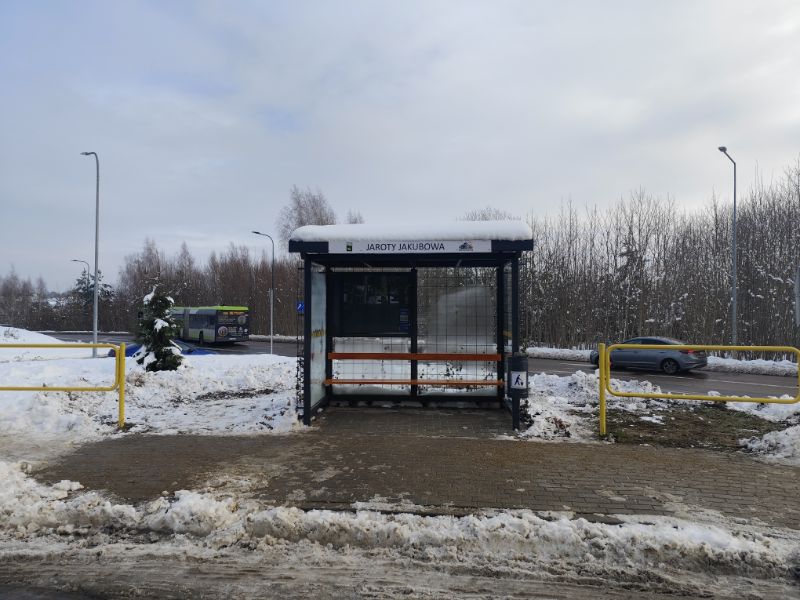 Jaroty (2025) 1 Zielony przystanek wyposażony w zielony dach, zielone ściany, nasadzenia w rabatach oraz gablotę informacyjną. Przystanek znajduje się przy ul. Bartąskiej/ Jakubowej.