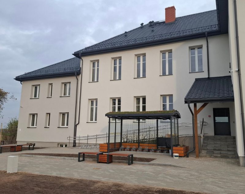 Opoczno (2025) 1 Zielona Wiata Rowerowa wyposażona w zielony dach, zieloną ścianę oraz stojaki na rowery. Wiata znajduje się przy szkole przy ul. Armii Krajowej.