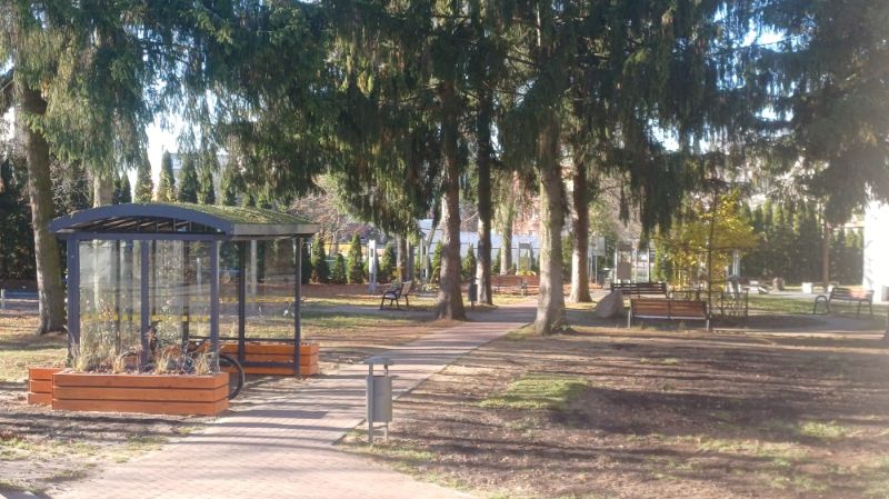 Mirosławiec (2024) 1 Zielony przystanek wyposażony w zielony dach oraz gablotę informacyjną. Przystanek znajduje się przy ul. Wolności.