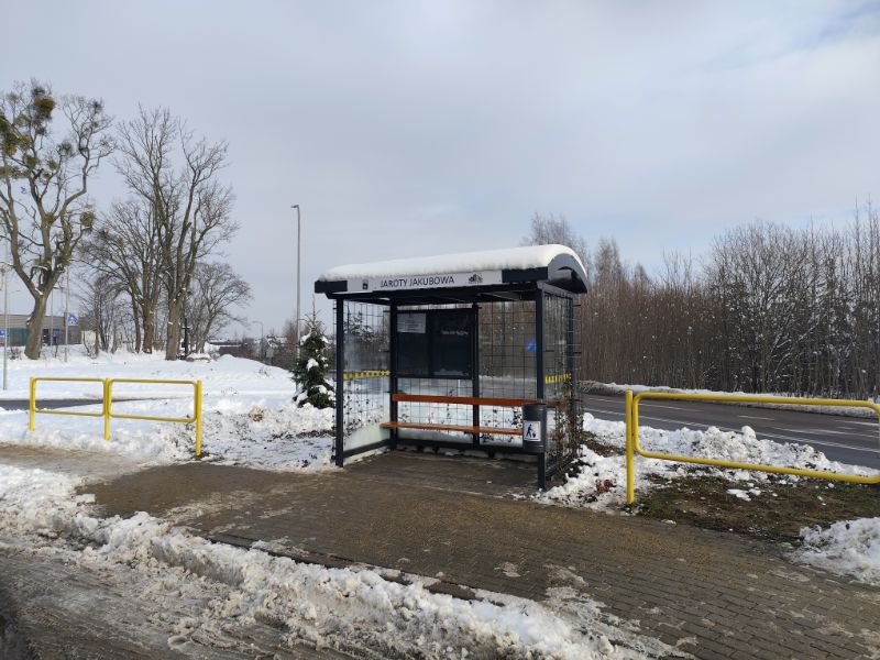 Jaroty (2025) 1 Zielony przystanek wyposażony w zielony dach, zielone ściany, nasadzenia w rabatach oraz gablotę informacyjną. Przystanek znajduje się przy ul. Bartąskiej/ Jakubowej.